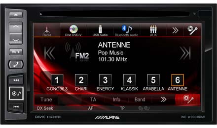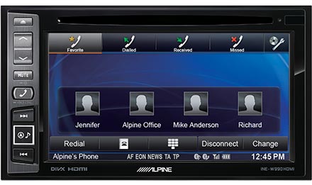 Встроенный модуль Bluetooth позволяет безопасно использовать телефон во время вождения. Расширенный Bluetooth Alpine обеспечивает новые функции для еще большей простоты вождения. Поддерживается большинством телефонов с поддержкой Bluetooth, что позволяет легко получить доступ к телефонной книге с автоматическими обновлениями и быстрым поиском по алфавиту. Вы можете удерживать и переключать входящие вызовы, а также просматривать дисплей быстрого набора с историей звонков. Вы можете объединить в общей сложности 3 телефона с INE-W990HDMI. Вы также можете транслировать музыку с одного телефона, одновременно совершая громкую связь с другой. Задайте четыре наиболее часто встречающихся номера для быстрого доступа на экране быстрого набора.