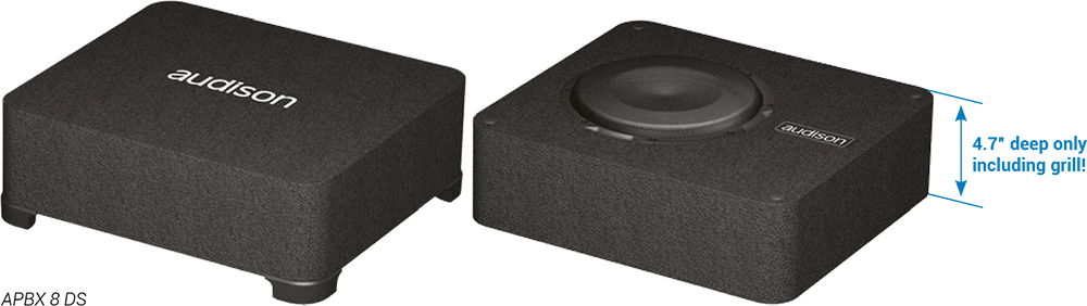 Сабвуфер Audison APS 10 D и Сабвуфер Audison APS 8D разработаны для обеспечения максимальной производительности в герметичном корпусе с ультракомпактными объемами; начиная с 10 и 7,5 л, с оптимальными значениями 12 и 8,5 л. соответственно. В версиях с двумя звуковыми катушками и одинарными звуковыми катушками предусмотрены нажимные разъемы для простоты подключения и настройки. С целью обеспечения высокой акустической мощности даже при использовании с меньшей мощностью, сабвуфер Audison APS 8 R был разработан для использования в рефлекторном корпусе объемом 8,5 литра с настройкой от 30 до 40 Гц. APS 8 R был специально разработан для объединения с Audison AP8.9 bit или Audison AP4.9 bit / AP4 D.