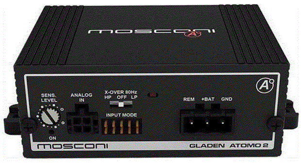 ATOMO 2 — данный усилитель имеет большой входной диапазон: 0,4 В - 5 В (Низкий уровень), 1,6 - 20 В (Высокий уровень) и автоматическое включение. Так же фильтр высоких и низких частот. Обладает мощностью: 10 - 16 В