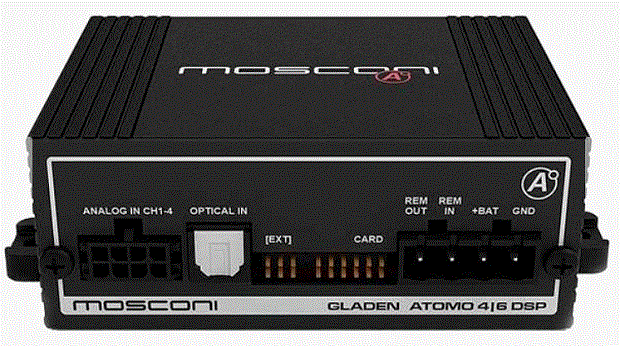 ATOMO 4 | 6 DSP — это самый маленький в мире цифровой сигнальный процессор (DSP) имеет 6 аналоговых выходов, 4 аналоговых входа (высокий уровень / низкий уровень), вход Toslink S / PDIF и порт для подключения аксессуаров BTS, BTM и EXT4HLin. Работает он при 12 В и 24 В (8-32 с функцией запуска и остановки). Особенности бесшумность благодаря чувствительности 105 дБ.