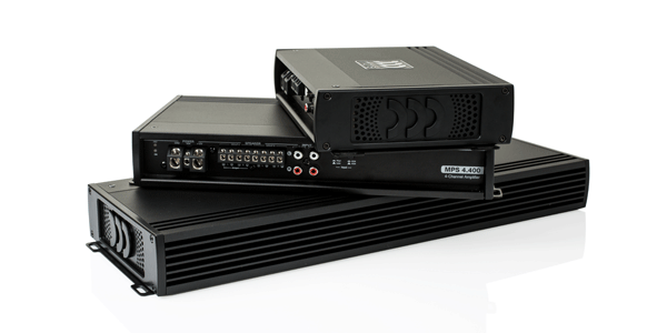 Усилители MPS включают в себя три модели - четырехканальный системный усилитель класса AB, монофонический усилитель класса D и пятиканальный системный усилитель. Усилители сконструированы вокруг экструдированного алюминиевого радиатора с матовой черной отделкой.
