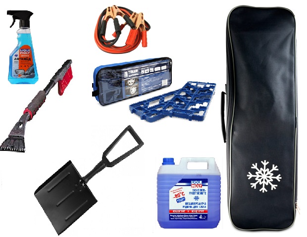 В зимний период сложно обойтись без щетки-скребка, провода для “прикуривания”, буксирного троса. Такой набор можно компоновать по собственному желанию поздравителя и предпочтений поздравляемого.