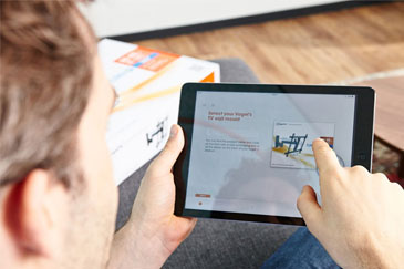 В приложении выберите свой телевизионный кронштейн Vogel's и телевизор. Приложение поможет вам шаг за шагом с удобной информацией и монтажом видео.