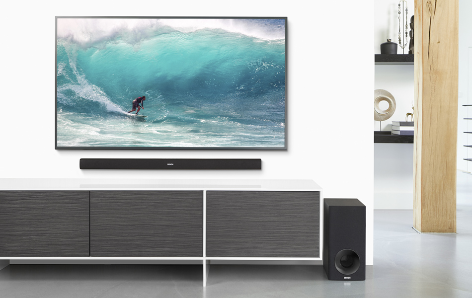 В Denon работают над тем, чтобы упростить, как никогда ранее, эффект погружения объемного звука в ваши любимые телепрограммы и фильмы с помощью ультратонкой звуковой панели DHT-S316. Имея высоту менее 5 см и включающий в себя скрытый беспроводной сабвуфер, DHT-S316 может передавать наш захватывающий фирменный объемный звук Denon из звуковых дорожек Dolby Digital и DTS, а также имеет встроенный Bluetooth для приема беспроводной музыки с телефонов, планшетов и компьютеров.