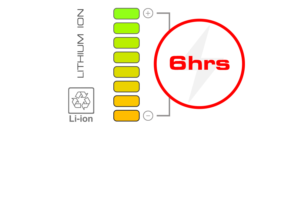 До 6 часов без подзарядки, благодаря литий-ионному аккумулятору. Оставьте источник энергии дома.