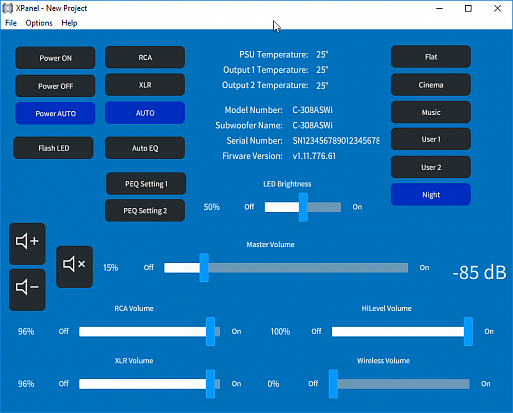 Новые сабвуферы оснащены портами сетевыми портами для управления настройками и функциями благодаря приложению Klipsch LowControl. Регуляция общего сигнального уровня с фазой и чистотой среза, а также контроль пятиполосного параметрического эквалайзера.