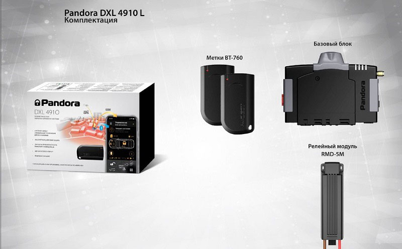 Управлять Pandora DXL 4910L удобно с телефона, а также с брелка, который можно купить отдельно. В качестве брелка подойдут Pandora D800, D670, D650 и D465. Управлять системой с телефона можно из приложения Pandora для iOS и Android. Ранее RF-модуль нужно было докупать отдельно, теперь он встроен в блок сигнализации.