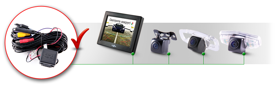 Благодаря блоку коммутации и управления, который входит в комплект видеокамеры заднего вида Gazer, подключение системы видеопарковки максимально простое и выполняется по принципу Plug&Play: достаточно соединить всего три разъема и подключить три провода. При этом питание АСС блока коммутации подключается не от фонаря заднего хода, а от предохранительного блока. От фонарей заднего хода поступает только управляющий сигнал, по которому реле блока подает питание к видеокамере и монитору. Такое решение обеспечивает так называемое чистое питание, что предотвращает различные шумы и помехи на изображении.
