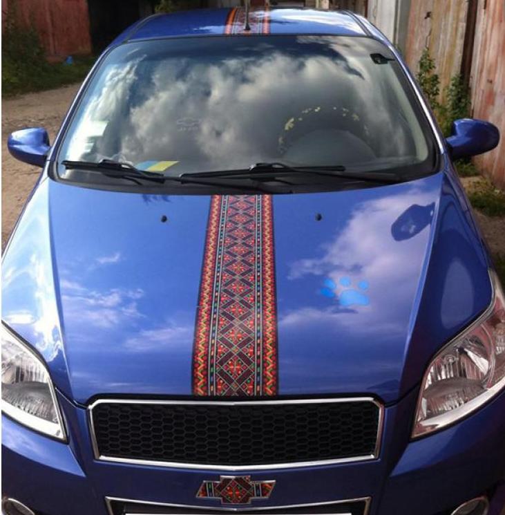 Та же самая ситуация и на автомобильном рынке. С каждым днем на дорогах появляется все больше и больше автомобилей с флажками, ленточками или наклейками с национальной символикой, ласково прозванными в народе "автовышиванка". С каждым днем ассортимент узоров и размеров растет так же как и количество  производителей данной продукции.