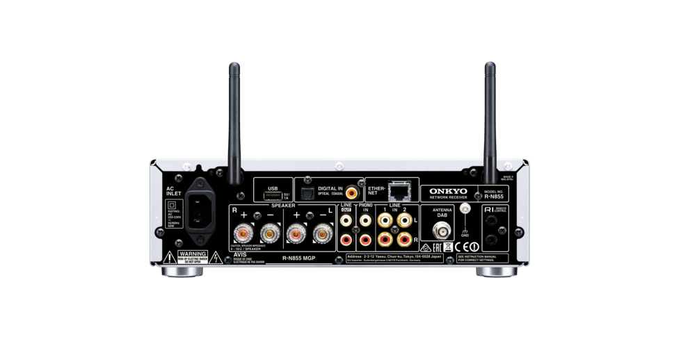 Интегрированный усилитель Onkyo R-N855 оснащен совместимым с iPhone USB-портом, способным передавать потоковые аудиофайлы MP3, FLAC или DSD и позволяет прослушивать Deezer или Spotify с помощью Google Cast или FireConnect.