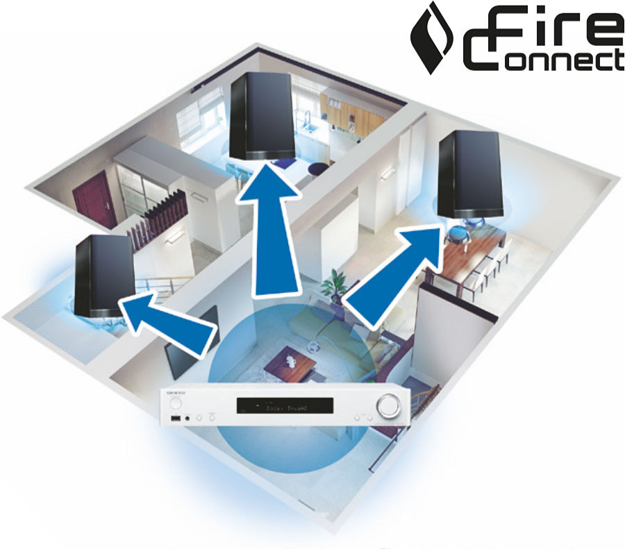 Сетевой стерео ресивер позволяет реализовать многокомнатную систему с технологией FireConnect. Разработанная BlackFire, она присутствует на многих устройствах. FireConnect позволяет наслаждаться музыкальным исполнением в нескольких комнатах дома. Передача музыки осуществляется с использованием домашней сети. Контроль чтения осуществляется с помощью смартфона или планшета из приложения Onkyo Remote.
