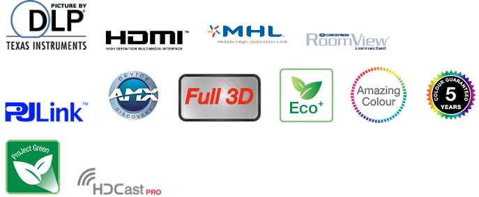 Этот Full HD-продукт имеет фантастический внешний звук от встроенных динамиков, предоставляя более захватывающее воспроизведение. Кроме того, он имеет простоту дизайна с несколькими входами, включая HDMI / MHL, USB Power и RJ45. Этот проектор идеален для подключения таких ключей, как Google Chromecast и Optoma HDCast Pro. Проектор позволяет подключать ноутбук, компьютер или Blu-ray-плеер и может быть установлен или взят в дорогу.