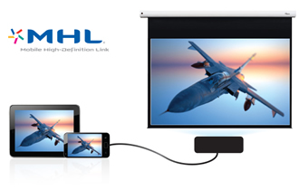 Превратите проектор в смарт-дисплей, подключив смартфон или планшет к одному кабелю с помощью MHL, позволяя просматривать презентации и документы, передавать видео и обмениваться фотографиями на большом экране.