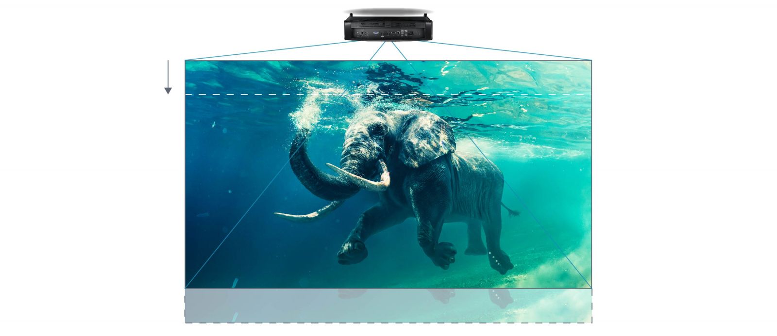 1,6-кратный зум и 1,39 до 2,22 коэффициент выброса с вертикальным сдвигом объектива позволяют гибкую и легкую установку для различных пространств и размеров экрана 140 "и выше.