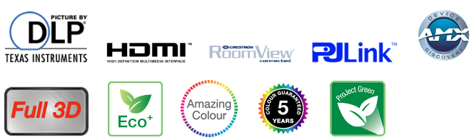 Он обеспечивает полную совместимость с аналоговыми и цифровыми источниками, включая HDMI v1.4a с поддержкой Full 3D, 2x VGA-in, VGA loop through, 2x аудиовход, аудиовыход, RJ45, управление RS-232 и расширенный пульт с управление лазером и мышью.