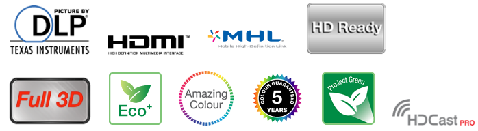 Представленная модель проектора отличается простотой дизайна, удобством навигации и надежностью. Удобный, с несколькими входами, включая HDMI и MHL, этот проектор идеально подходит для подключения ключей HDMI, таких как Google Chromecast и Optoma HDCast Pro, позволяющих подключать ноутбук, ПК или Blu-ray-плеер.