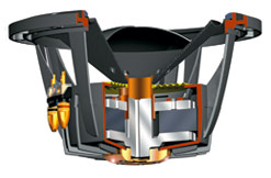 Уникальный дизайн: очень широкий диапазон частот от 70 Гц до 4 000 Гц с минимальными нелинейными искажениями. Новое целлюлозное волокно диафрагмы имеет экспоненциальный профиль, чтобы обеспечить реалистичные воспроизведения в среднечастотном диапазоне.