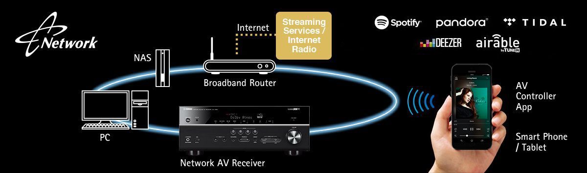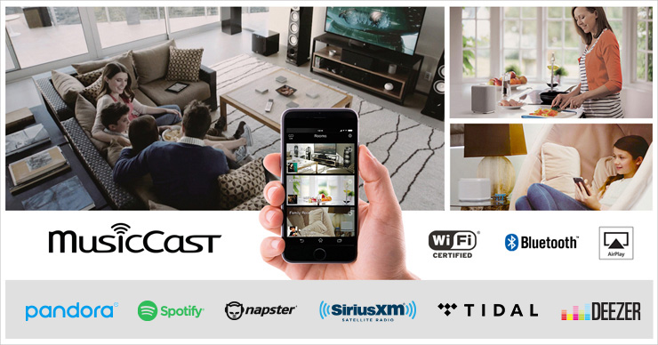 Ресивер является частью чрезвычайно впечатляющей сетевой аудиосистемы Yamaha MusicCast. С MusicCast вы можете управлять всеми совместимыми продуктами Yamaha MusicCast через смартфон или планшет. Воспроизведение одной и той же музыки на всех компонентах или разделение звука на разные зоны для разных настроений в каждой комнате. Приложение MusicCast CONTROLLER позволяет вам управлять системой по всему дому и быстро изменять настройки.